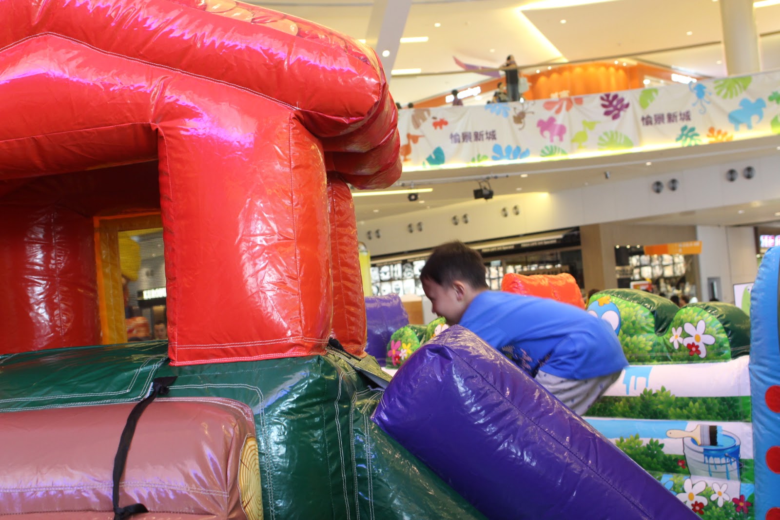 這個大型充氣森林屋由滑梯、越野叢林及籃球架組成,每節可玩約4分鐘,收費$30;不便宜,不過可在舒適冷氣位,讓小朋友瘋玩瘋跳,是超開心的回憶!