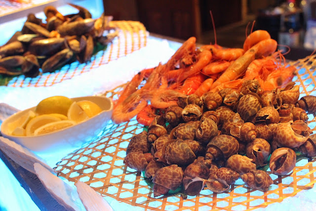 介紹完甜品,也看看海鮮:午市的款式當然不及晚市吸引,但種類也超級豐富,包括:青口、瀨尿蝦、玻璃蝦、大蜆、花螺、長腳蟹,後來還推出了 蟶子 及 龍蝦鉗!