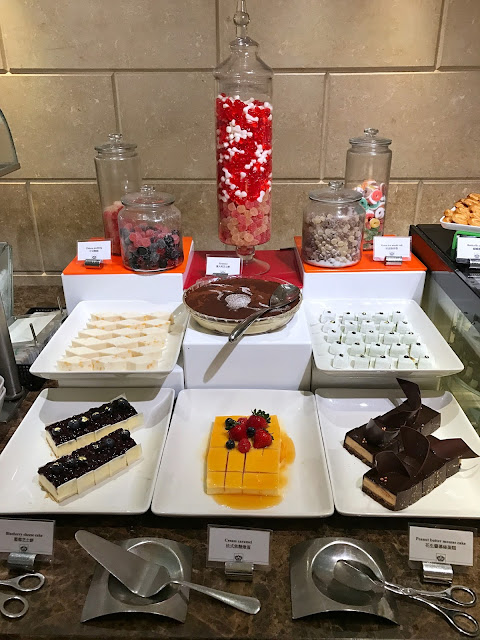 甜點選擇更加不得了,除了糖果罐是常設,其餘意大利芝士位、中式糕點、藍莓芝士餅、法式焦糖燉蛋、花生醬慕絲蛋糕、冰皮綠茶卷等甜點,一吃完就換新品上場!