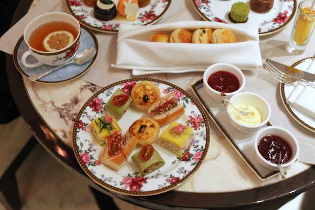 接著,落地式三層下午茶架,以及下午茶靈魂的英式鬆餅也抵達了,Langham Rose 的 Wedgwood 餐碟還是那麼迷人,而是次下午茶的茶點更是別出心裁,精美得來香甜不膩。