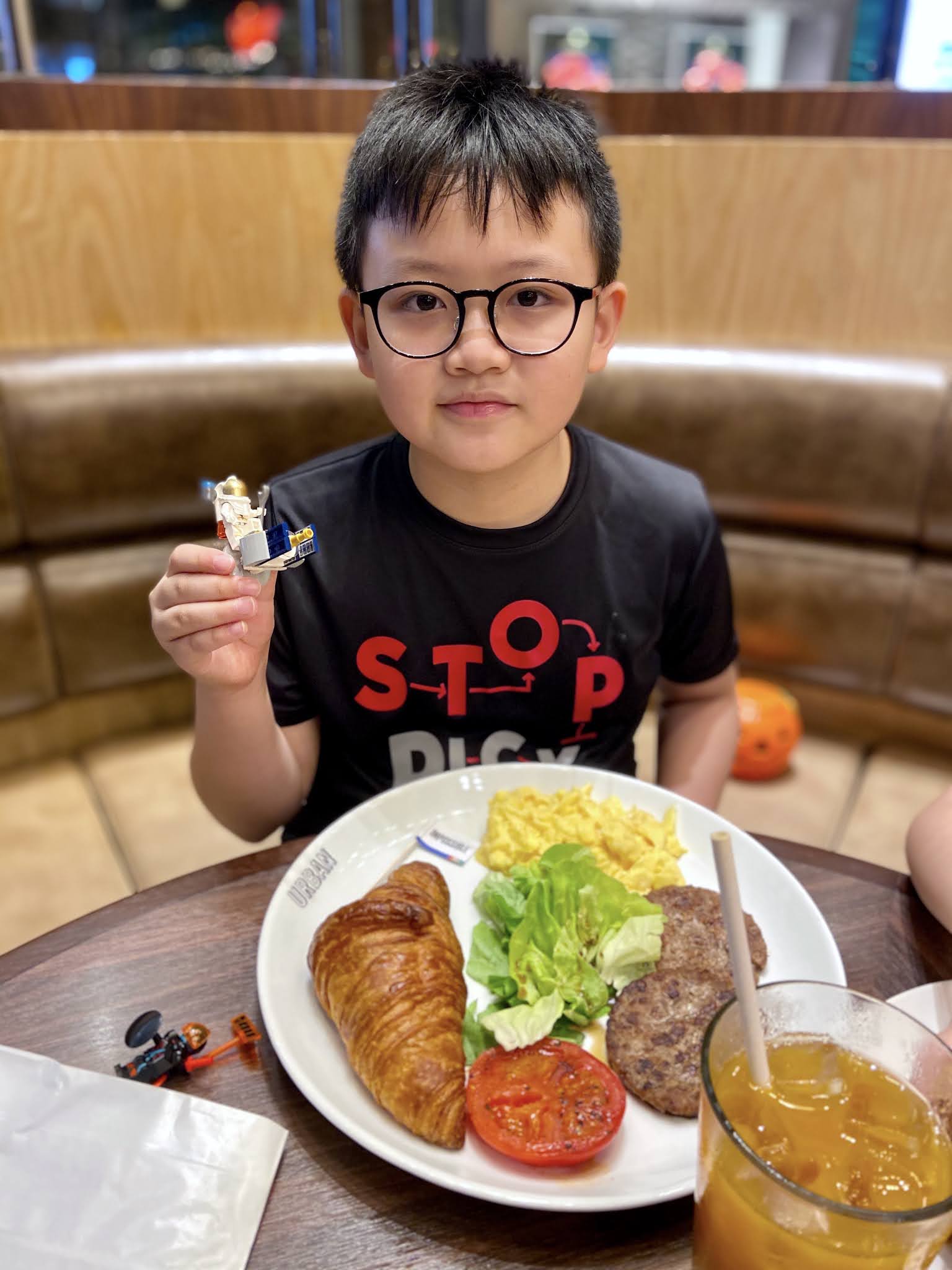最後是生日正日的活動。由於打風關係,一家人都放飯留家;媽媽不用早起煮早餐、送兩兄妹上學,而是利用假期開始執衫。大概十點左右,就一家人落樓吃大早餐,順便去買 Matthew 的生日蛋糕~