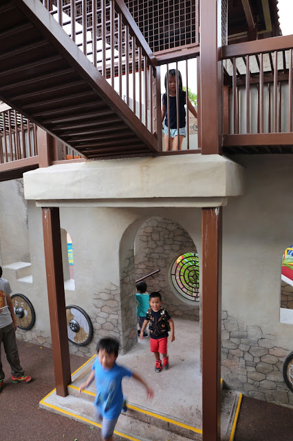 上回來玩小紅熊堡壘時,妹妹身手還未有那麼靈活;這次基本上都可以跟足哥哥,爬高爬低,非常霸害!反而是媽媽我,背著他們的泳衣雜物,想爬通道真是有心無力呀.....