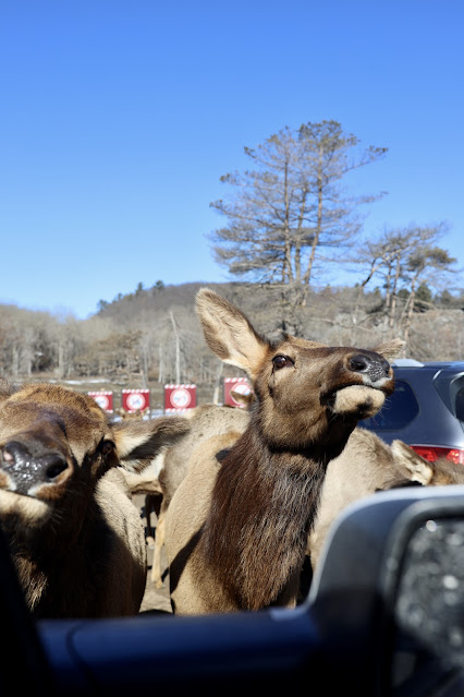 公園內的鹿群明顯深知我們這堆遊客會進行投餵,不但靠近車子,更會探頭深入車廂內,甚至會主動積極去咬我們手上的甘筍條,感覺竟有點似與寵物狗狗在互動,十分有趣!!!